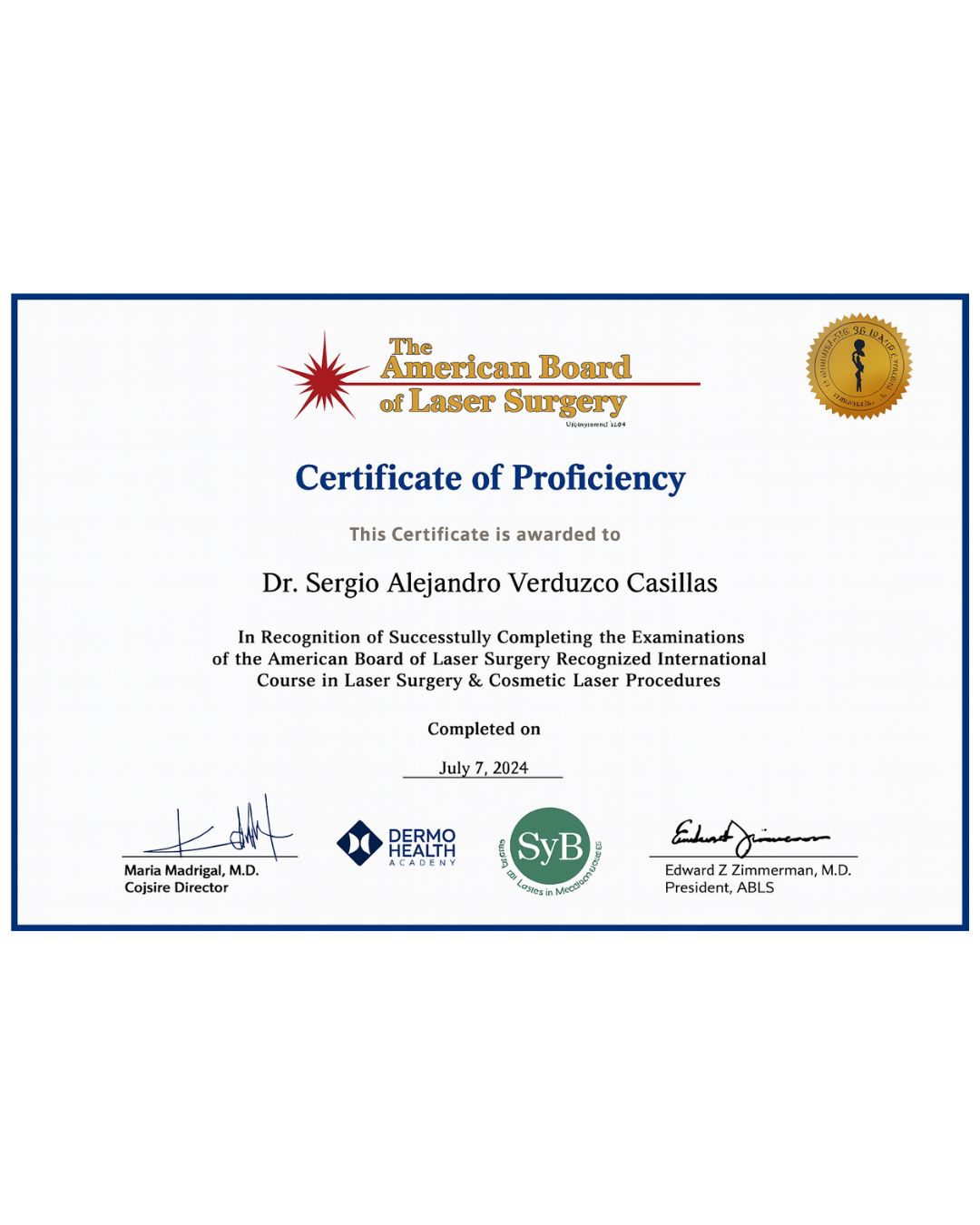 Certificado en Cirugía Láser y Procedimientos Cosméticos.