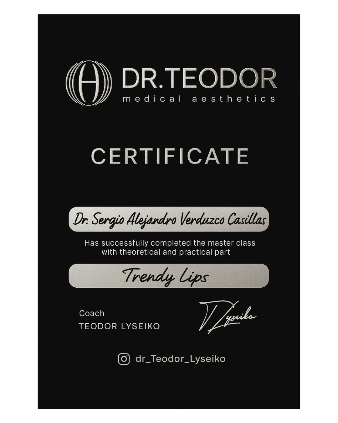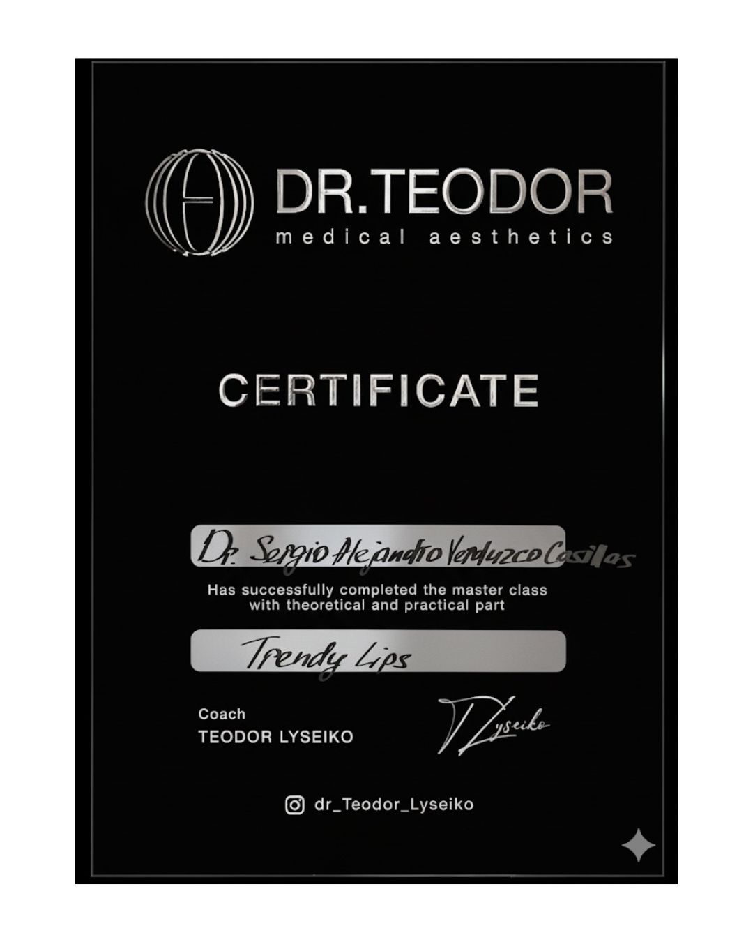 Mi búsqueda de la excelencia me llevó a Londres, donde me entrené con el renombrado Dr. Duku. Obtuve un diploma internacional en técnicas avanzadas de relleno corporal, siendo el primer médico mexicano en lograr esta prestigiosa certificación. Este hito encendió en mí la pasión por innovar aún más.