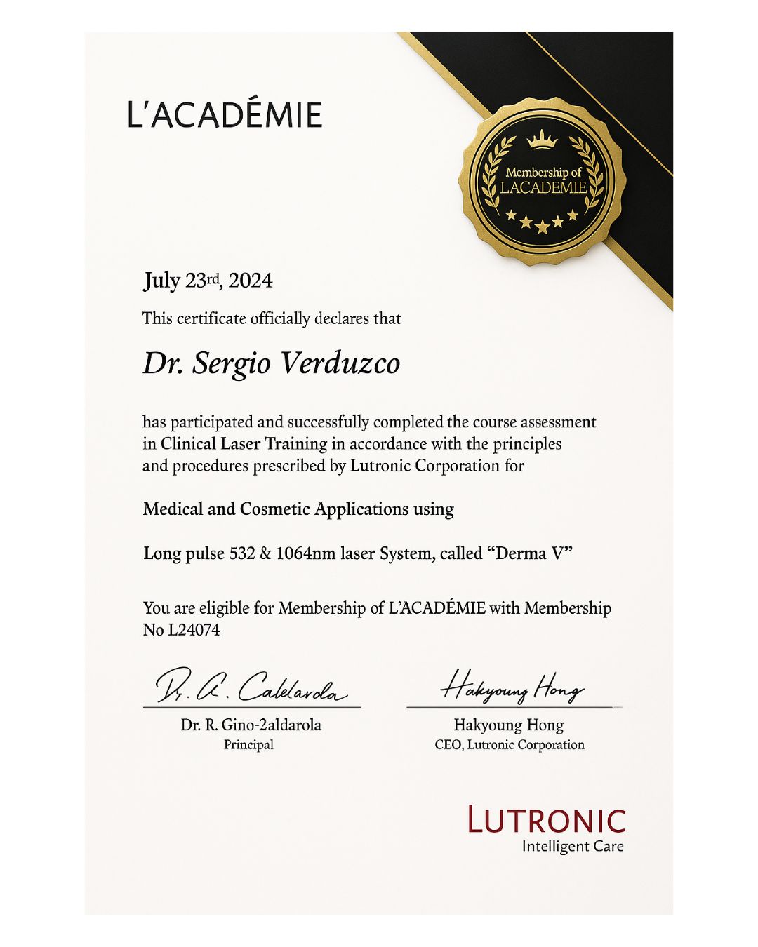 Conoce la formación, certificaciones y el liderazgo que posicionan al Dr. Sergio Verduzco como un referente en medicina estética.